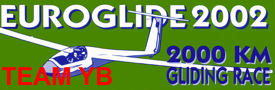 On the following pages you will find a day-to-day report of the adventures of "team YB" in the Euroglide 2002. Team YB consisted of Henno and myself, Marco, who were flying and driving alternatively and of course our good old LS-3a, the YB. Our thanks go to the DSA, our gliding club, for lending the YB to us for this multi-day adventure as well as the Euroglide organization for their continuous drive to organize this happening every two years.